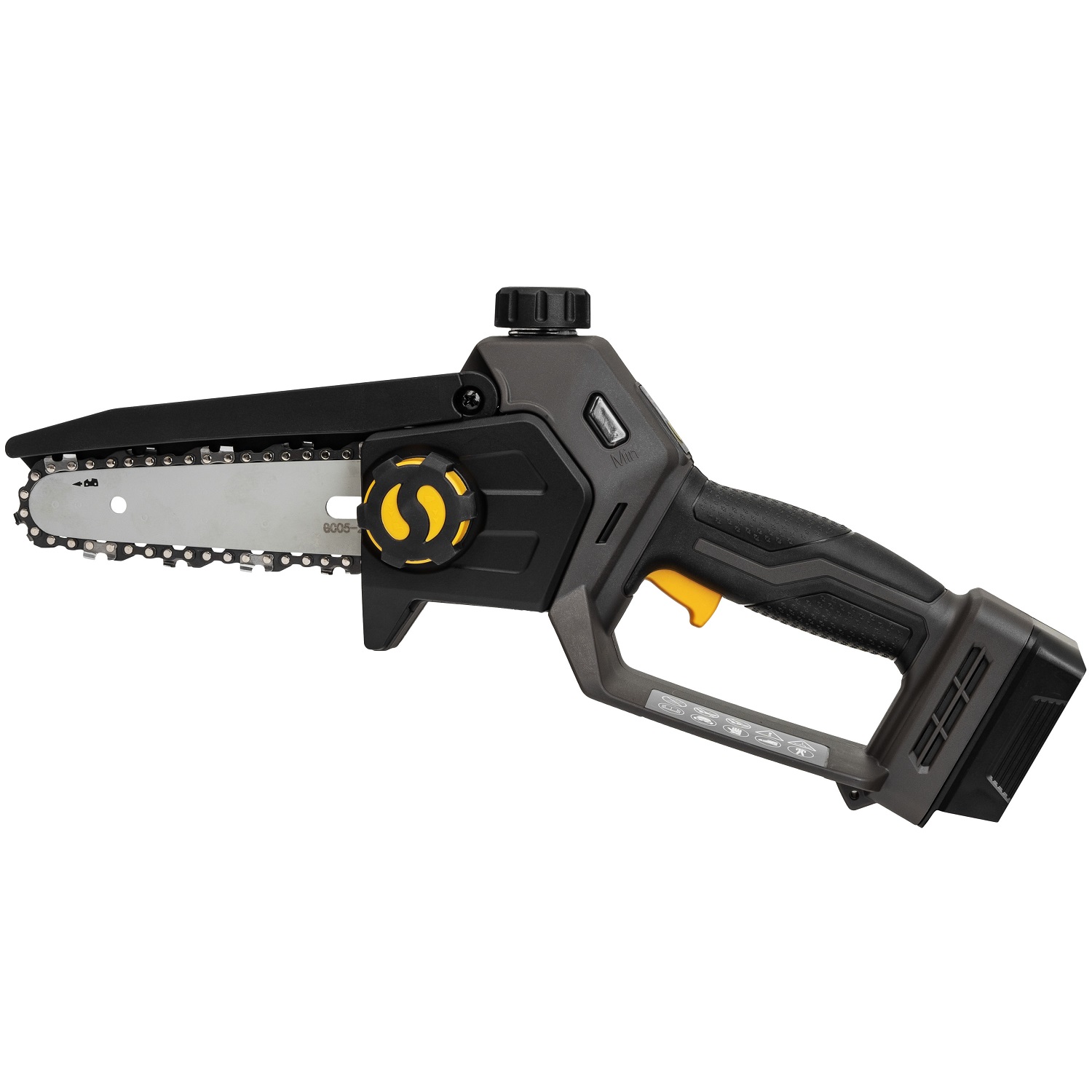 Ühe käega kasutatav akukettsaag koos komplekti kuuluva aku ja kiirlaadijaga, et saaksite hõlpsasti alustada jämedamate okste lõikamist ja väiksemate puude langetamist.